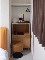 ライティングデスク。お化粧用に鏡とコーヒー紅茶専用電気ポットもご用意